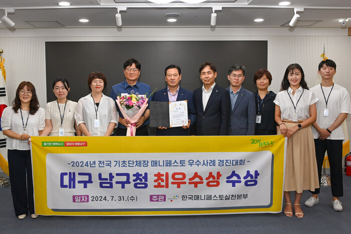 [로컬세계=박세환 기자] 대구 남구는 한국매니페스토실천본부가 주최하는 ‘2024 전국 기초단체장 매니페스토 우수사례 경진대회’에서 대구 기초자치단체로는 유일하게 최우수상을 수상하는 영예를 안았다고 2일 밝혔다.