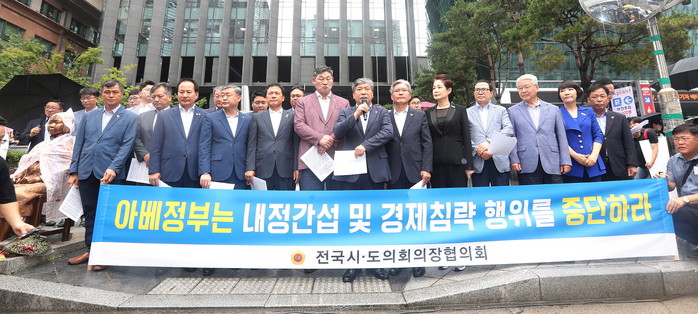 이어 송 의장은 “전국 17개 시·도의회 의장은 국민들의 자발적 불매운동 등 각종 활동을 지지하며 국민들과 함께 승리를 쟁취해내겠다”며 “이번 경제침략을 계기로 동북아 지역의 평화와 공존을 위한 초석을 다져야 할 것”이라고 강조했다.