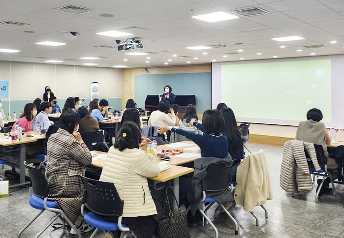 | ▲ 용인시 민,관 복지분야 사례관리담당자들이 이호선 교수의 특강을 듣고 있는 모습. 용인시 제공 |