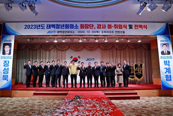 [로컬세계=박상진 기자]강원 태백청년회의소가 지난 22일 오투리조트 컨벤션홀에서 신·구 회장단 및 감사 이·취임식과 전역식을 개최했다.