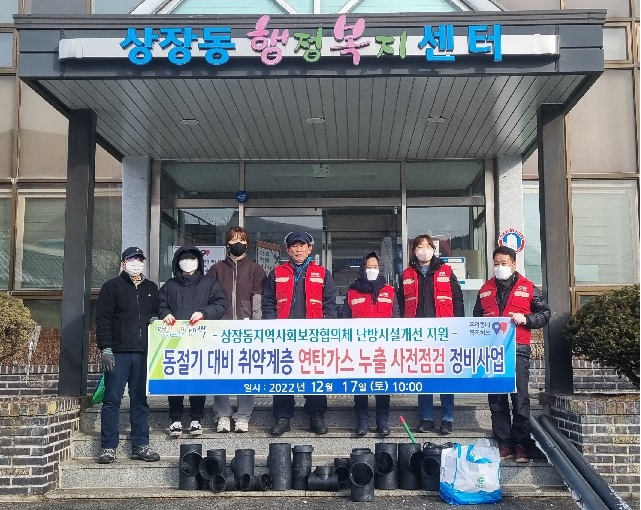 이날 한파 경보로 매서운 날씨에도 불구하고 상장동지역사회보장협의체 위원들은 상장동 9통 일대의 연탄보일러 사용 가구를 가가호호 방문하며 연탄보일러 정비에 구슬땀을 흘렸다.