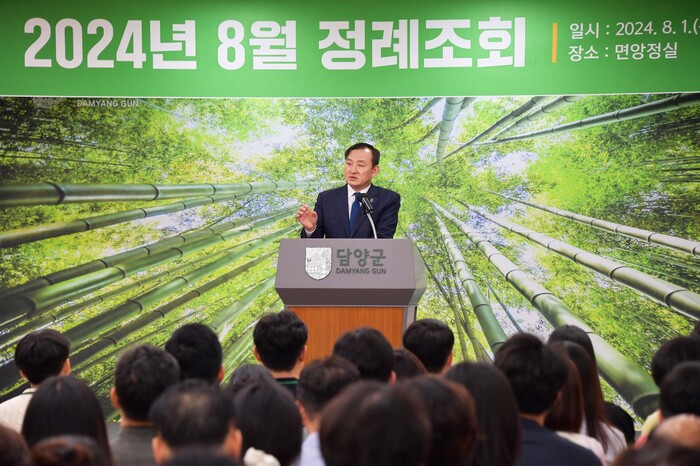[로컬세계 = 이남규 기자]전남 담양군은 군청 면앙정실에서 공직자 160여 명이 참석한 가운데 8월 정례 조회를 개최했다.
