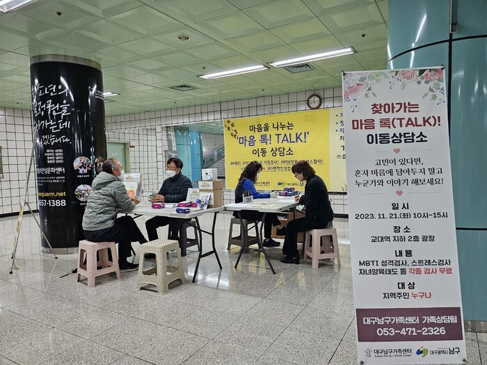 대구 남구가족센터 가족 상담사업은 전문적인 상담 자격을 갖춘 16명의 전문상담사가 부부 상담, 부모-자녀 상담, 이혼 전·후 상담, 난임 상담, 임신·출산 갈등 상담 등 다양하게 이루어진다.