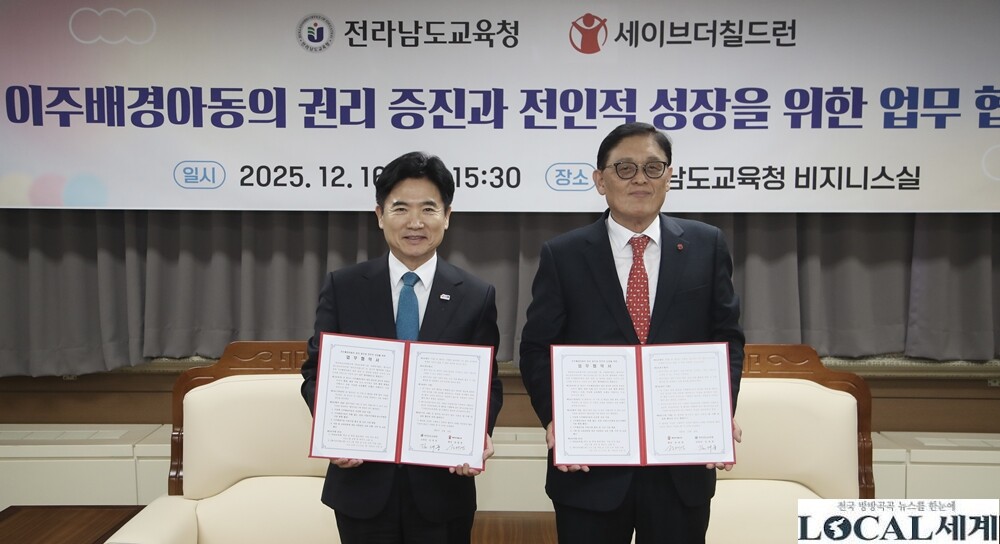[로컬세계 = 김명진 기자]전라남도교육청은 16일 청사 비즈니스실에서 세이브더칠드런(총장 정태영)과 ‘이주배경아동의 권리 보장과 전인적 성장을 위한 업무협약’을 체결했다.