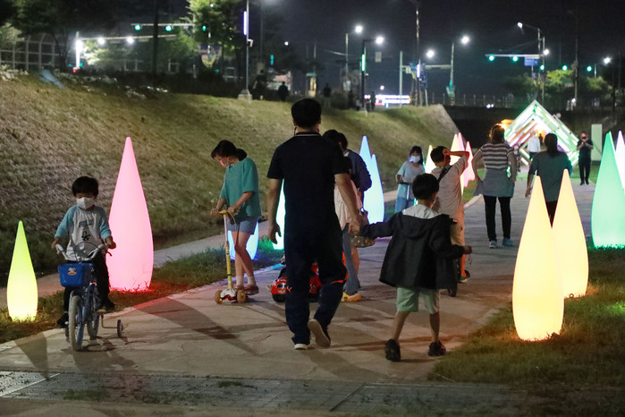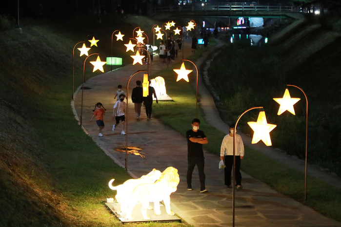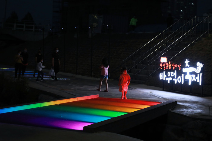 경기 안성시가 2021 안성맞춤 남사당 바우덕이 축제를 맞아 공도 승두천 산책로에 ‘승두천의 물길을 따라 펼쳐지는 빛의 향연’이라는 부제로 물빛, 별빛 정원을 테마로 한 야간경관을 조성했다.