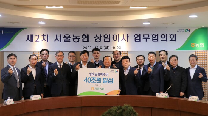 농협(회장 이성희) 서울지역본부는 6일 서울지역본부에서 개최된 상임이사 협의회에서 서울농협(본부장 황준구) 상호금융 예수금 40조원 달성탑 기념행사를 가졌다.