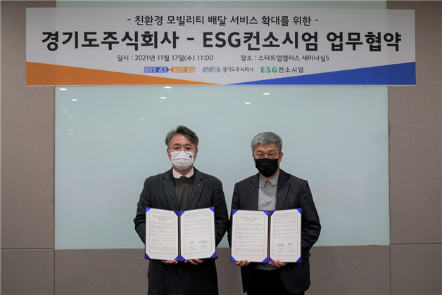 경기도주식회사는 17일 판교 본사에서 ESG컨소시엄과 '친환경 모빌리티 배달 서비스 확대를 위한 업무협약'을 체결했다고 밝혔다.