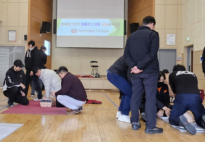 ▲부산진소방서는 13일부터 3일에 걸쳐 펌뷸런스 대원들에 대한 구급교육을 실시했다.<부산진소방서 제공> |