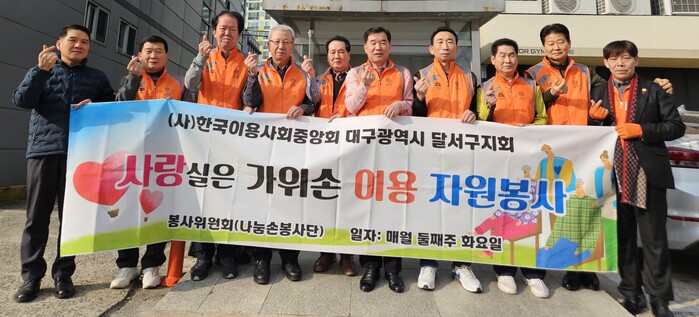 한국이용사회중앙회 달서구지회(지회장 박인수)는 20년째 매월 첫번째, 두번째 화요일 노인요양시설에 거주하시는 거동불편 어르신들에게 이용봉사를 펼쳐 이웃사랑을 실천하고 있다. 지금까지 1만2000여 명의 이용봉사를 실시했다.