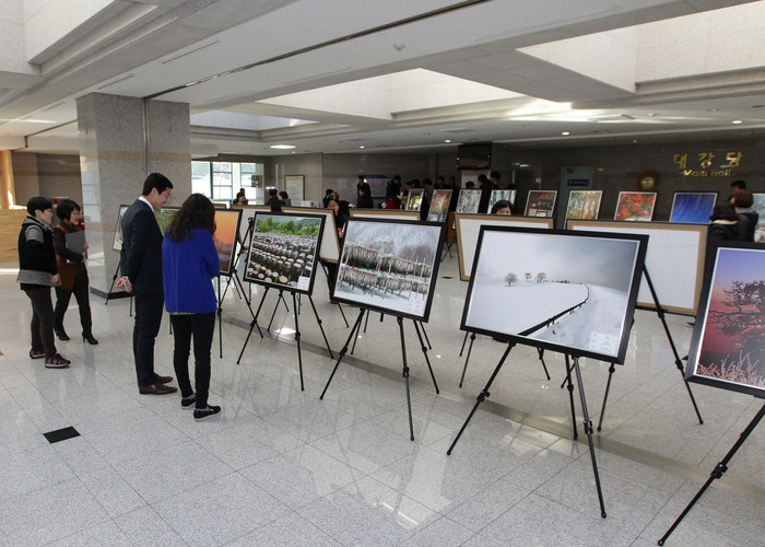강릉시청 1·2층 로비에는 강원도 구석구석의 아름다운 자연 경관과 지역의 대표적인 문화유산 등을 담은 150여점의 사진이 전시되고 있다.