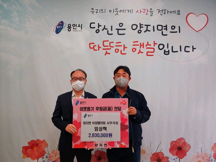 처인구 양지면 평창1리 임상혁 이장은 9일 어려운 이웃을 위해 써 달라며 양지면에 성금 283만원을 기탁했다.