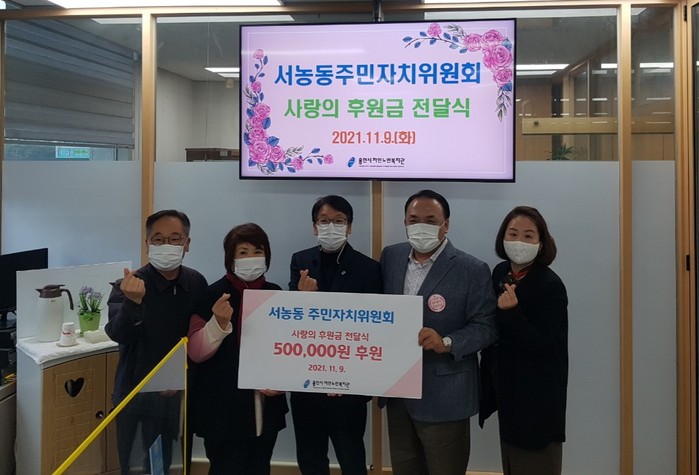 같은 날 기흥구 서농동 주민자치위원회는 사랑의 알뜰장터를 열어 마련한 수익금 50만원을 처인노인복지관에 기탁했다.