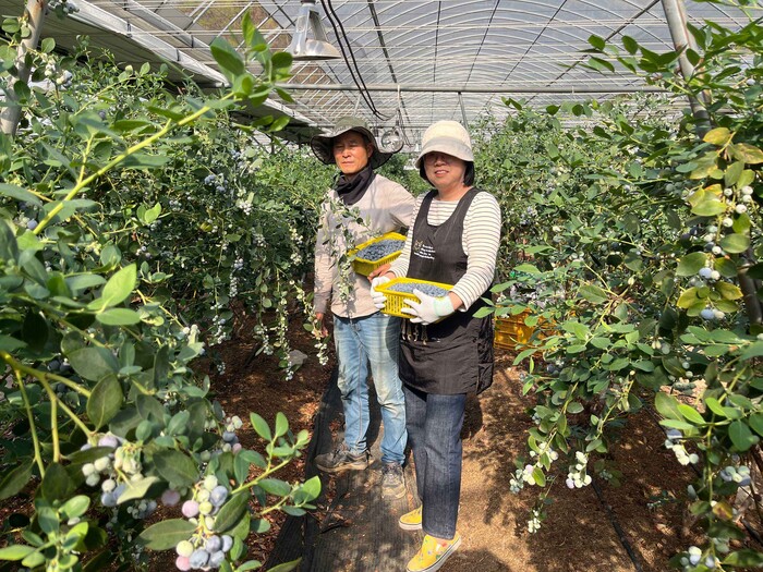 ▲정민자 아주마 대표와 블루베리 농장주 |