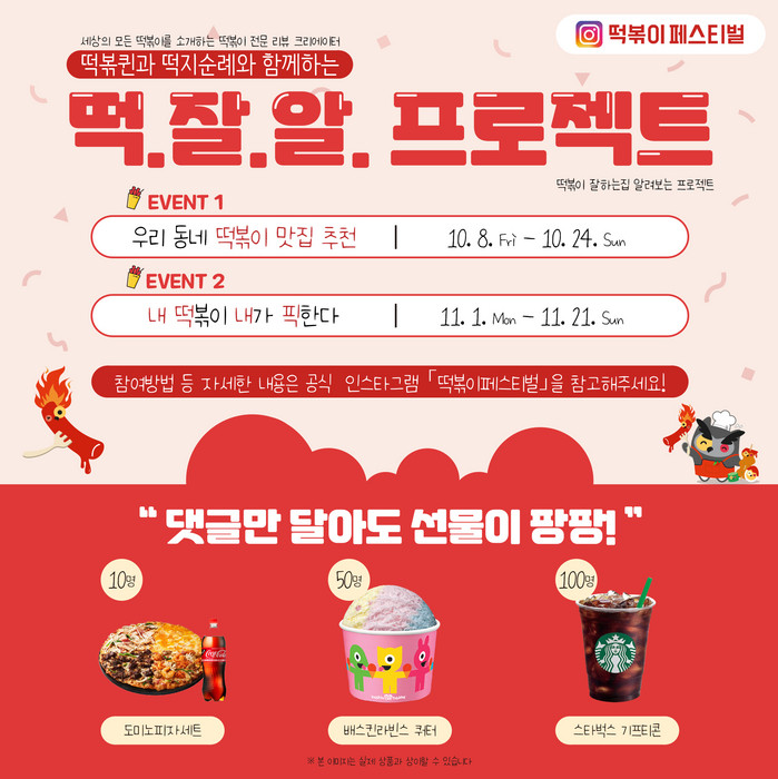참여 방법은 간단하다. 대구 북구에 소재한 떡볶이 가게 중 내가 좋아하는 떡볶이 맛집을 공식 인스타그램 “떡볶이 페스티벌”에 댓글로 추천하면 된다.