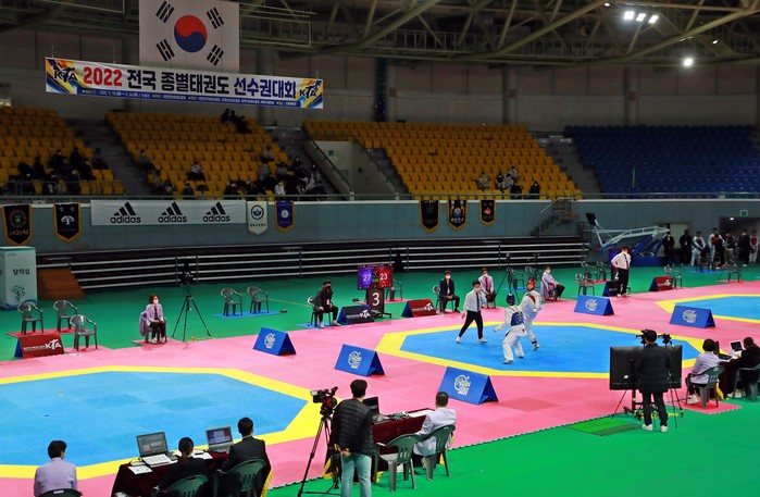 [로컬세계 박상진 기자]2022년 전국 종별 태권도 선수권대회가 지난 15일을 시작으로 오는 21일까지 7일간에 걸쳐 태백 고원체육관에서 열리고 있다.