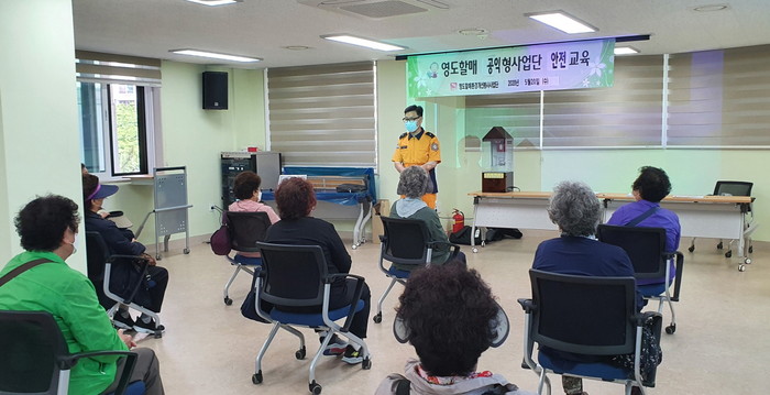 영도구 시니어 클럽과 협업하여 화재 및 재난 발생 시 취약한 노인층을 대상으로 찾아가는 소방안전교육을 추진, 화재발생 초기 대응 요령, 소화기 사용법, 주택용 기초 소방시설의 중요성 등을 교육하는 순으로 진행했다.