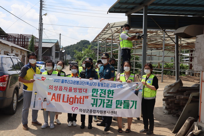 [로컬세계 박상진 기자]경북 의성군과 의성군종합자원봉사센터, 의성읍자율방범대, 의성읍여성자율방범대는 지난 13일 경상북도종합자원봉사센터의 ‘2021 뚝심이 자원봉사단 활동지원 사업 공모’에서 선정된 ‘All Light - 안전한 귀가길 만들기’를 통해 골목길 태양광 벽부등 설치 봉사활동을 실시했다고 16일 밝혔다.