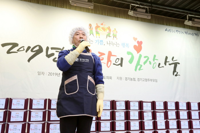 김장이 끝난 후 송 의장은 행사장을 방문한 도내 노인복지관, 장애인 복지관의 관계자들에게 ‘사랑의 김장’을 전하며 “우리가 좋은 기운 불어넣은 맛있는 김치를 어렵고 힘든 이웃들에게 책임지고 전달하겠다”고 약속했다.