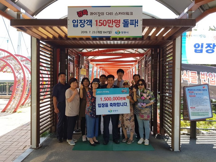 150만 번째 입장 주인공은 서울 용산구에서 직장동료와 함께 마산 여행을 온 최영옥(61)씨였다. 최 씨는 " 마산에 친척집방문 겸 여행을 와서 근처에 아름다운 저도 비치로드와 유명한 스카이워크가 있다고 하여 들렀는데 생각지 못한 큰 선물을 받게 돼 기쁘다"고 소감을 밝혔다.