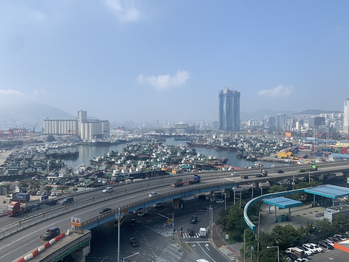 | ▲제8호 태풍 바비[BAVI]가 북상 중인 25일 오후 부산 동구 5부두에 선박들이 태풍을 피해 줄지어 정박해 있다. |