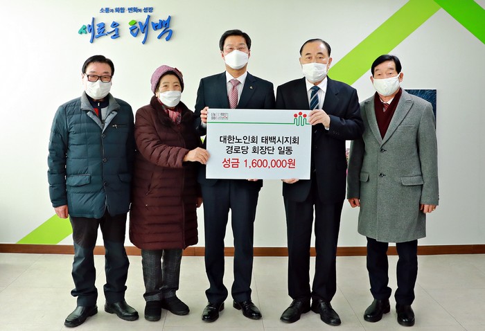 [로컬세계 박상진 기자]대한노인회 태백시지회 경로당회장단(지회장 이성택)은 5일 태백시청을 방문해 희망2021 나눔캠페인 이웃돕기 성금 160만원을 기탁했다.