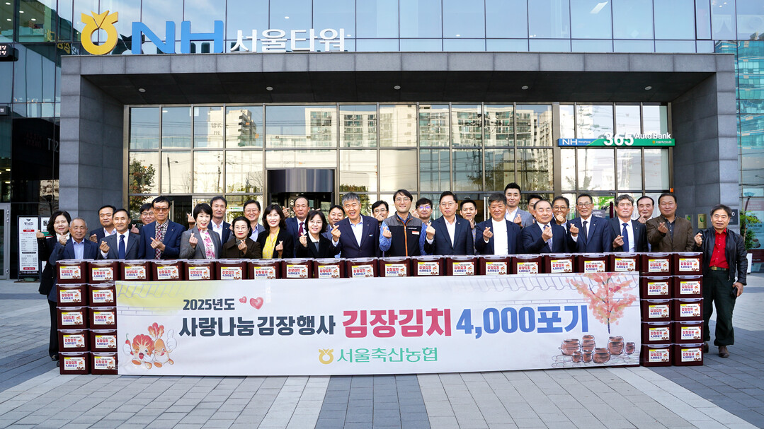 서울축산농협(조합장 진경만)은 지난 13일 본점(NH서울타워) 앞마당에서 지역의 어려운 이웃을 돕기 위한 ‘2025년도 사랑나눔 김장행사’를 개최했다.