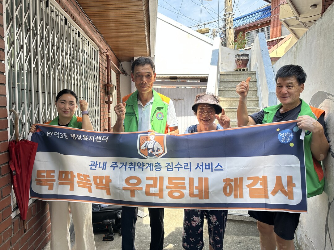 ‘뚝딱뚝딱 우리동네 해결사’는 만덕3동의 역점사업으로 독거노인·수급자 등 주거환경이 열악한 가정을 발굴해 실질적인 환경개선을 지원하는 프로그램이다.