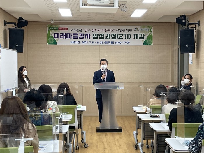 조재구 남구청장은 인사말을 통해 “미래마을강사 양성과정을 통해 특색 있는 교육자원을 개발하고 학습형 일자리과정 평생교육으로 지속가능한 평생학습도시 조성 및 행복한 교육공동체 남구를 만드는데 힘쓰겠다”고 전했다.