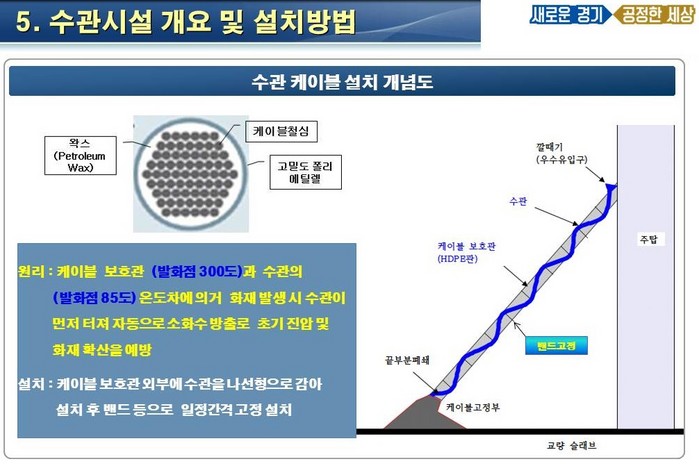 1일 경기도에 따르면 도는 지난 3월 18일 이런 내용을 담은 ‘교량 케이블의 화재를 방지하는 수관 장치 및 화재방지 방법’에 대한 특허등록을 완료했다고 밝혔다.