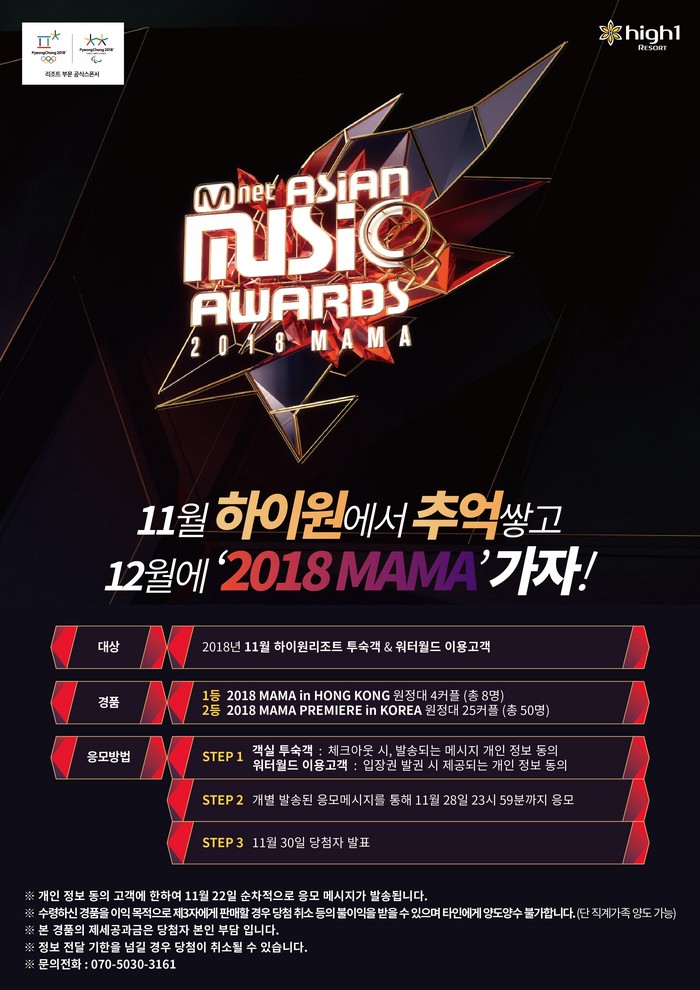▲‘2018 MAMA(Mnet Asian Music Awards)’ 원정대 이벤트 포스터.(하이원리조트 제공) |