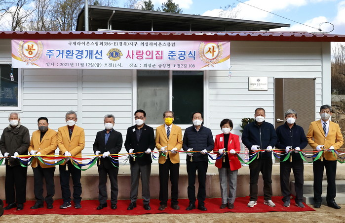 [로컬세계 박상진 기자]경북 의성군 의성라이온스클럽(회장 류장영)은 지난 10월부터 약 20일간 금성면 초전2리 김 모씨(중증장애인가구)의 가구를 대상으로 사랑의 집짓기를 하고 지난 12일에 준공식을 가졌다고 16일 밝혔다.