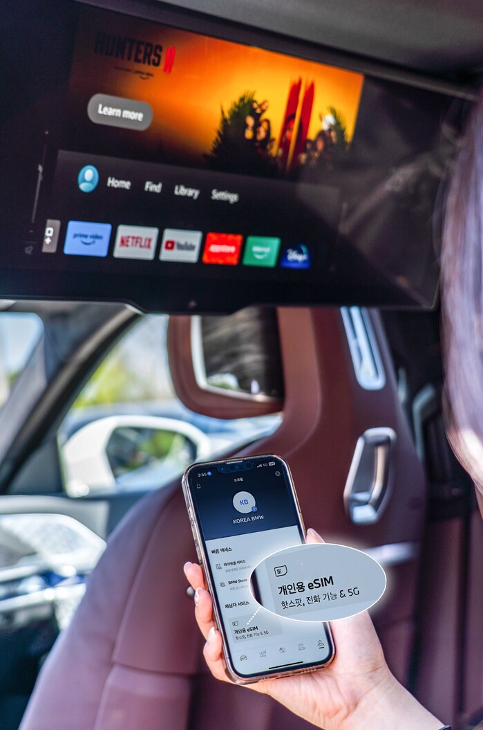 차량용 e심은 별도의 물리적인 칩 없이 차량에 내장된 식별칩을 활용하여 모바일데이터를 사용할 수 있는 서비스다. BMW 차량 뒷좌석 모니터를 통해 유튜브 등을 보기 위해서는 통신사 무선 데이터를 사용해야 하는데, 이 때 차량용 e심 서비스가 필요하다.