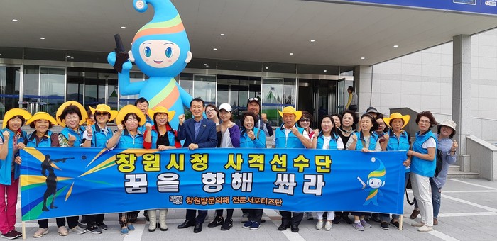 [로컬세계 한용대 기자]경남 창원시는 11일 세계사격선수권대회가 열리고 있는 창원국제사격장에서 시청 소속 선수단과 북한 선수단에 대한 응원전을 펼쳤다.