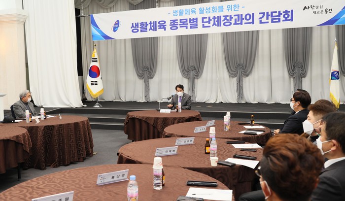 [로컬세계 김병민 기자]경기 용인시가 16일 생활체육 활성화 방안 마련을 위해 테니스, 배드민턴, 게이트볼, 족구 등 생활체육 4개 종목단체 관계자들과 간담회를 가졌다.