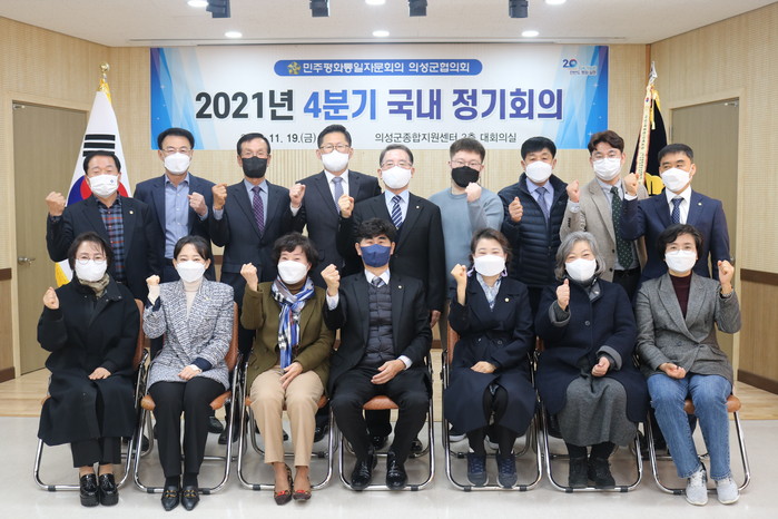 [로컬세계 박상진 기자]민주평화통일자문회의 의성군협의회(회장 신기호)는 19일 의성군종합지원센터 3층 대회의실에서 자문위원 20명이 참석한 가운데‘2021년 4분기 국내 정기회의 및 통일의견수렴’을 개최했다.