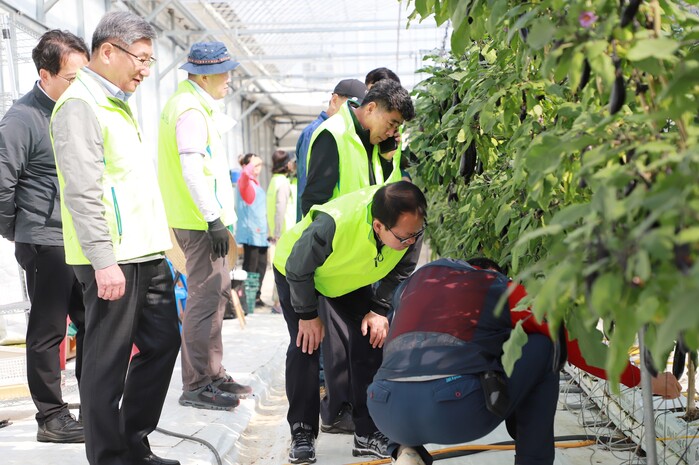 농협(회장 강호동) 여영현 상호금융대표이사 등 임직원 30여명은 본격적인 영농철을 맞아 19일 경기도 파주시 파주읍 소재 가지 농가를 찾아 밭 고르기와 가지 순 자르기 등을 거들며 농촌일손돕기 활동을 실시했다.