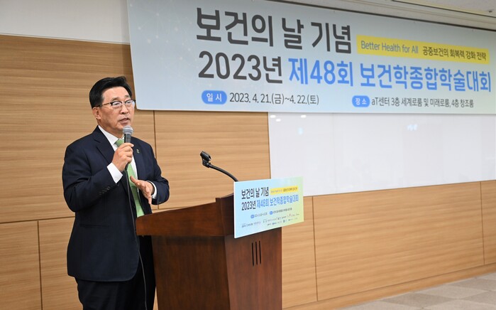 한국농수산식품유통공사 김춘진 사장은 21일 서울 양재동 aT센터에서 개최한 ‘제48회 보건학종합학술대회’에 참석해 축사를 하고 관계자들과 학술대회 대주제인 ‘Better Health for All’에 대해 심도있게 논의했다.