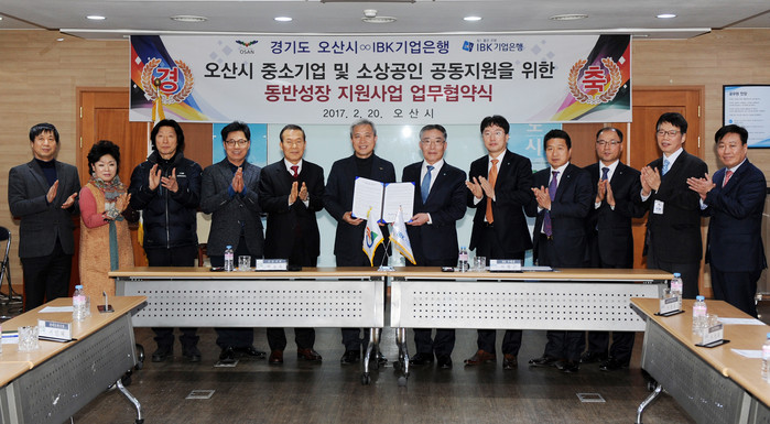 [로컬세계 주덕신 기자]경기 오산시는 20일 시청 물향기실에서 IBK 기업은행과 중소기업 및 소상공인 동반성장 지원 확대를 위한 2017년 동반성장 지원사업 협약식을 체결했다.