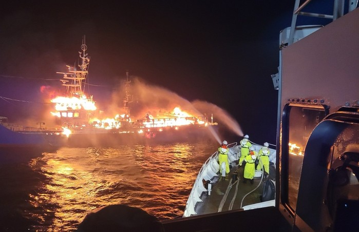 해경 도착당시 화재선박에 타고 있던 승선원 전원은 인근에 있던 선단선의 도움으로 27명 전원 무사히 구조됐으며, 해경은 경비함정 7척을 동원해 화재 진압에 나섰으나 선체에 보관중이던 다량의 기름과 인화물질 등으로 인해 끝내 진화되지 못하고 4일 정오 12시경 화재 발생 약 15시간만에 침몰했다.