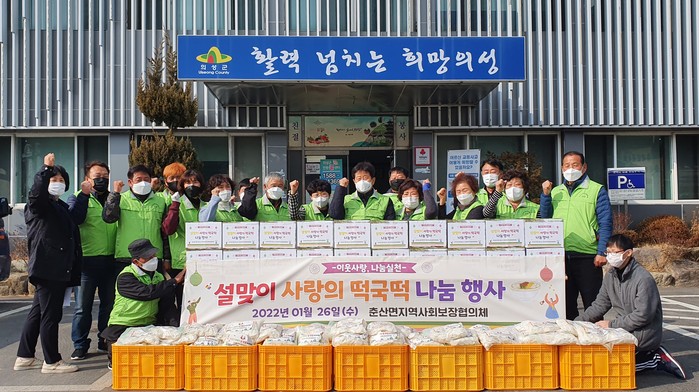 [로컬세계 박상진 기자]경북 의성군 춘산면 지역사회보장협의체(공동위원장 윤병식, 이미경)는 지난 26일 춘산면사무소에서 ‘설맞이 사랑의 떡국떡 나눔 행사’를 가졌다고 27일 밝혔다.