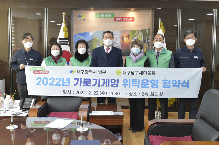 [로컬세계 박세환 기자]대구 남구청(구청장 조재구)은 23일 대구남구새마을회(회장 이현숙)와 ‘2022년 가로기 게양 민간위탁 업무 협약식’을 체결했다고 밝혔다.