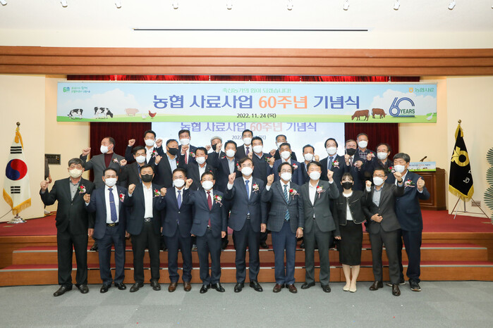 농협사료(대표이사 정상태)가 24일 서울시 강동구 성내동 농협사료 본사 대강당에서 사료사업 60주년을 맞아 기념행사를 개최했다.