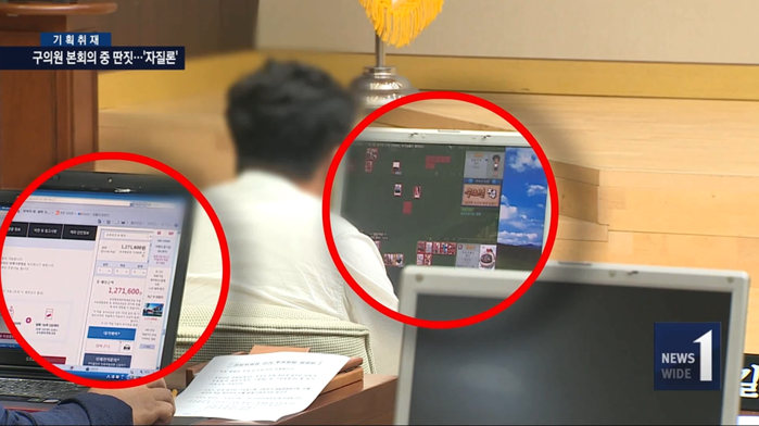 HCN 관악방송에 따르면 이번 본회의에 참석한 구의원 2명이 의석에 놓인 노트북으로 화투 게임, 여행 정보 검색 등 적절치 못한 일탈 행위가 드러나면서 지방의원에 대한 질타가 쏟아졌다.