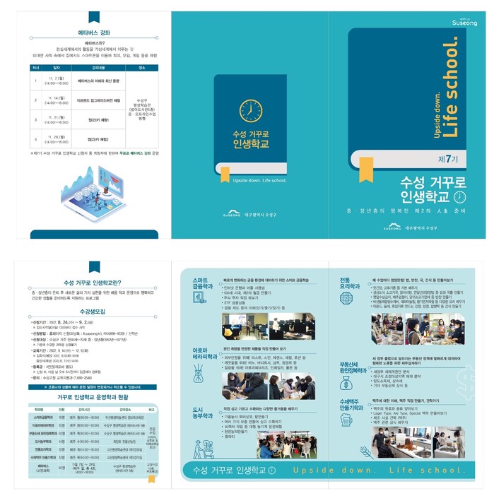 ‘수성 거꾸로 인생학교’는 그동안 가족과 사회를 위해 열심히 달려온 중·장년층을 위한 특성화 교육프로그램이다. 2018년 하반기부터 개설돼 2022년 6월까지 총 6기에 걸쳐 232명의 수강생이 수료했다.
