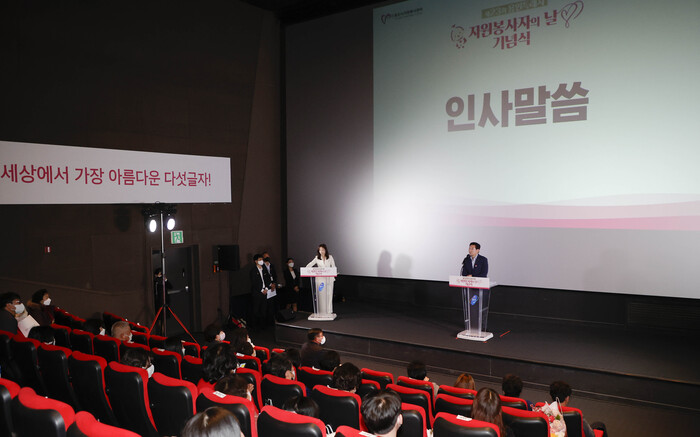 [로컬세계=김병민 기자]경기 용인시자원봉사센터는 9일 기흥구 중동 동백 CGV에서 '제23회 용인시 자원봉사자의 날 기념식'을 열고 자원봉사활동에 기여한 봉사자들에게 표창장을 수여했다.