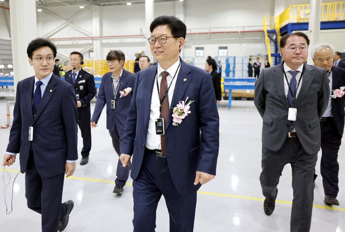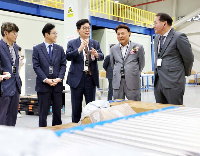 ▲고광효 관세청장(가운데)이 30일 군산물류지원센터내에 개장한 '군산세관 특송물류센터' 현장을 둘러보고 있다. 관세청 제공 |