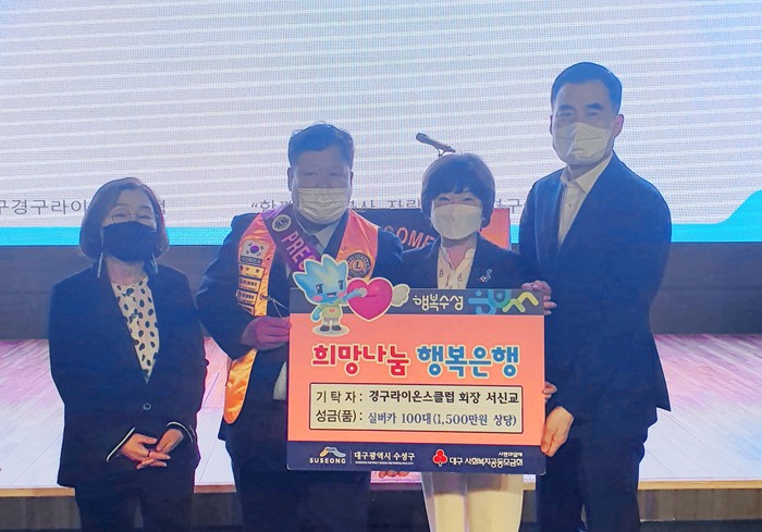 한편 경구라이온스클럽은 지산복지관 희망나눔큰잔치 봉사금 전달, 사랑더하기 김장나누기 봉사 등 지역사회 발전 및 주민의 복지향상을 위해 지속적으로 협력하고 있다.