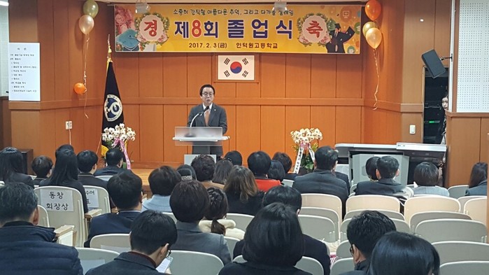 먼저 정기열 의장은 올해 개교 10주년을 맞아 8회 졸업식을 맞은 인덕원고 교직원 및 관계자에게 축하를 전했다.