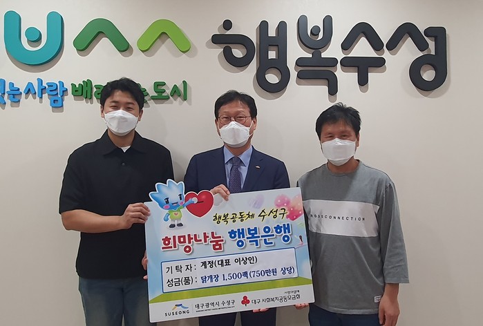 [로컬세계 박세환 기자]대구 수성구는 지난 21일 계정(대표 이상인)에서 구청을 방문해 닭개장 1500팩(750만원 상당)을 전달했다고 22일 밝혔다.