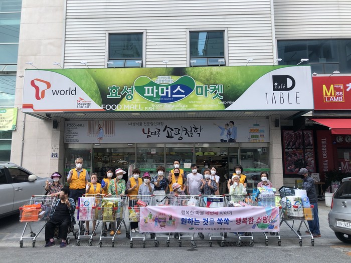 [로컬세계 박세환 기자]대구 북구 구암동 지역사회보장협의체는 21일 관내 저소득 노인 및 장애인 10세대와 함께 관내 착한가게인 효성파머스마켓(칠곡점)에서 취약계층의 생필품 지원을 위해 '원하는 것을 쏙쏙~ 행복한 쇼핑' 사업을 진행했다.